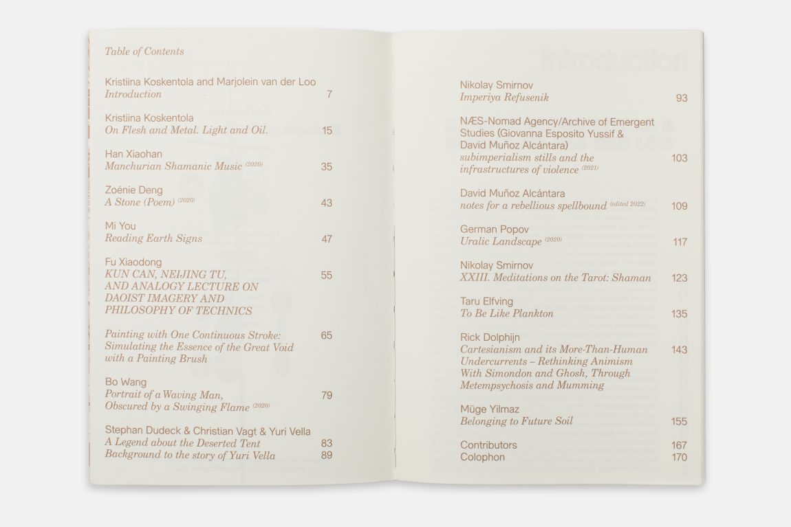 With contributions from Zoénie Deng, Rick Dolphijn, Stephan Dudeck & Christian Vagt & Yuri Vella, Taru Elfving, Giovanna Esposito Yussif & David Muñoz Alcántara (NÆS-Nomad Agency/Archive of Emergent Studies), Fu Xiaodong, Han Xiaohan, Kristiina Koskentola, Marjolein van der Loo, Mi You, German Popov, Nikolay Smirnov, Bo Wang, and Müge Yilmaz