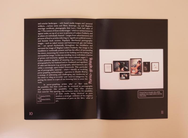 Pinaka argues that in porno-graphing, artists negotiate how subjectivity, and its value, is produced by self-submitting into the ‘dirtiness’ of sexual and artistic positions. To approach the ‘dirtiness’ of these works as well as their processes, Pinaka uses, amongst other theories and strategies, the notion of ‘queer negativity’.