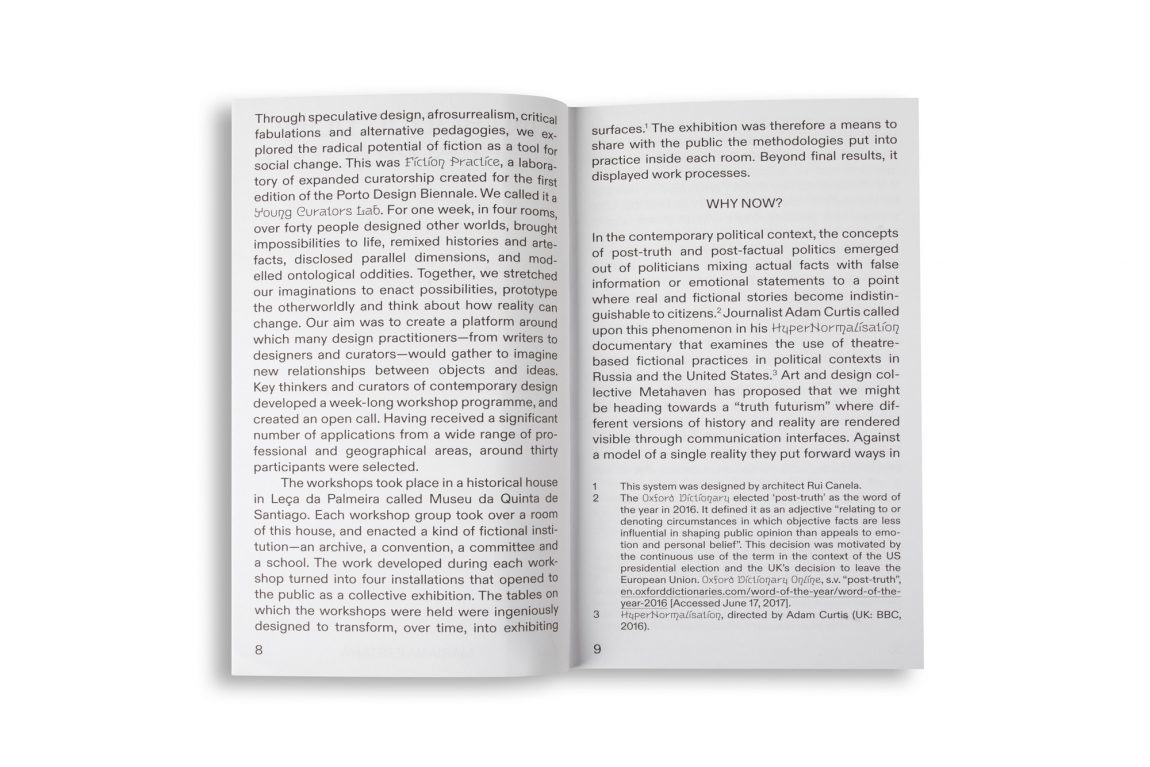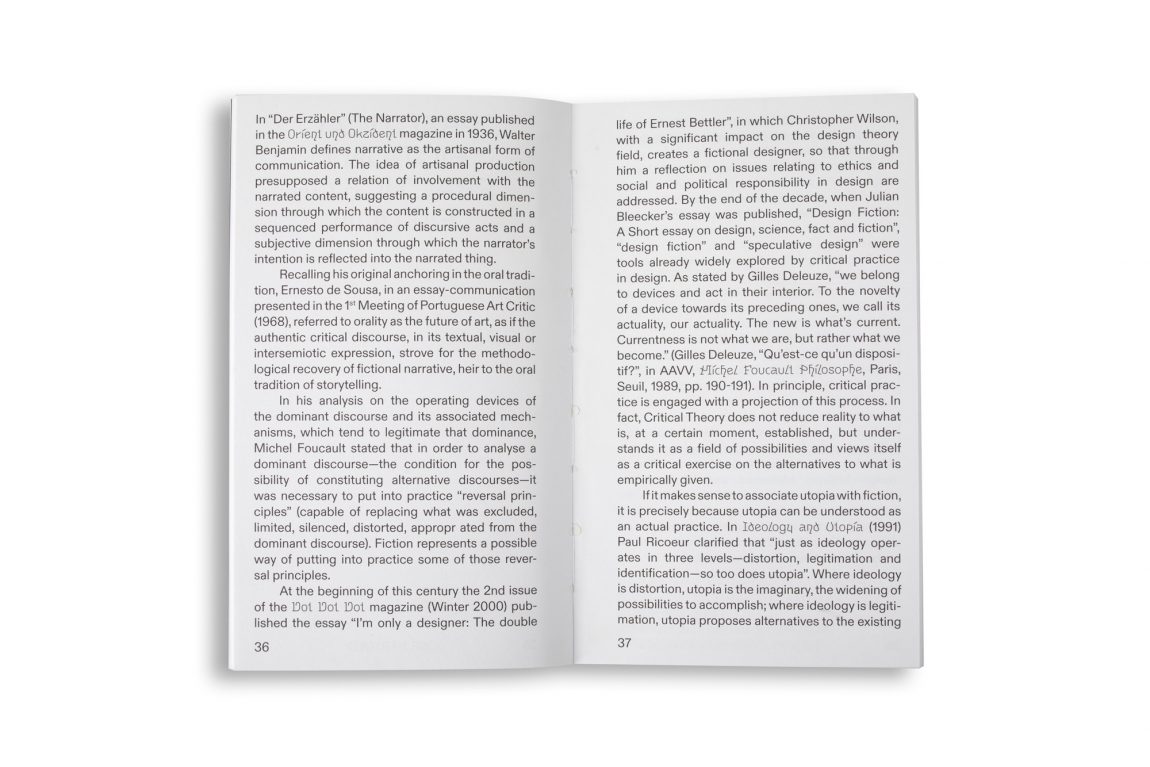 To explore the relationship between fiction and design, Mariana Pestana set up a curatorial lab during the first edition of the Porto Design Biennale, in September 2019. The results of the lab - four workshops led by key design thinkers and attended by over 30 young professionals – were first showcased in Porto. These results will be post-produced at Onomatopee during Eindhoven Design Week in October, in a presentation and public talk, again open to participation. At Onomatopee, we will edit and riso-print a zine / insert to be included in some of the books.
