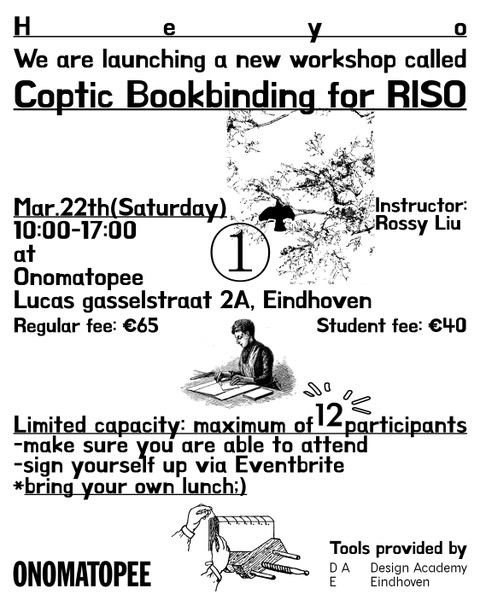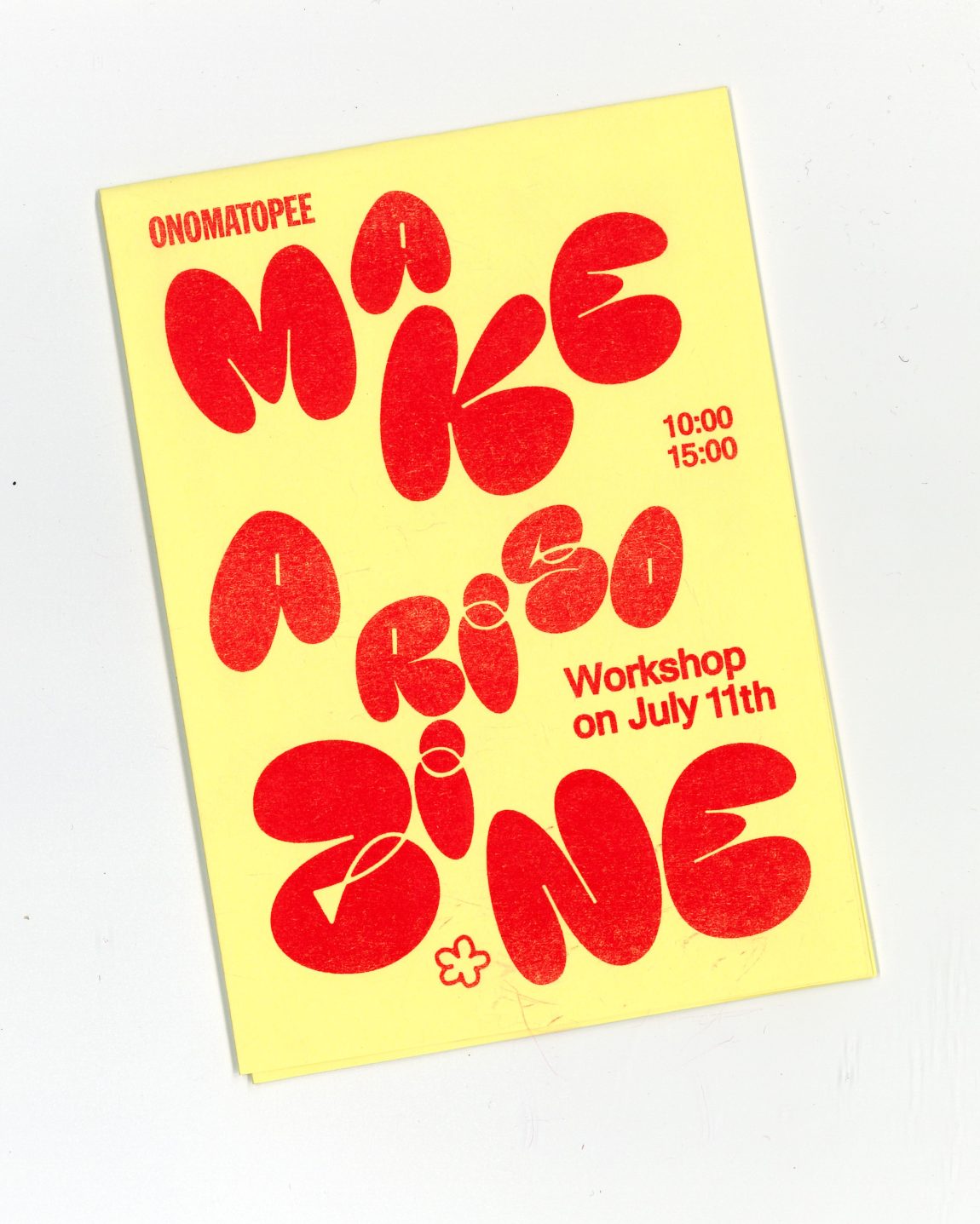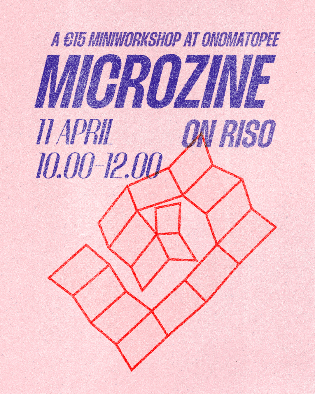 This 5-hour workshop (10.00 - 15.00) is taught in English. We'll have coffee and tea, go through an introduction to the history of the risograph, followed by a demo of the A3 risoprinter, and a lesson on how to set up your zine. There will be a lunch break after which everyone gets to print their designs. The workshop fee includes 15 copies of your 2-color risoprinted zine, a mini RISO guide by Onomatopee, and a list of resource links sent after the workshop.