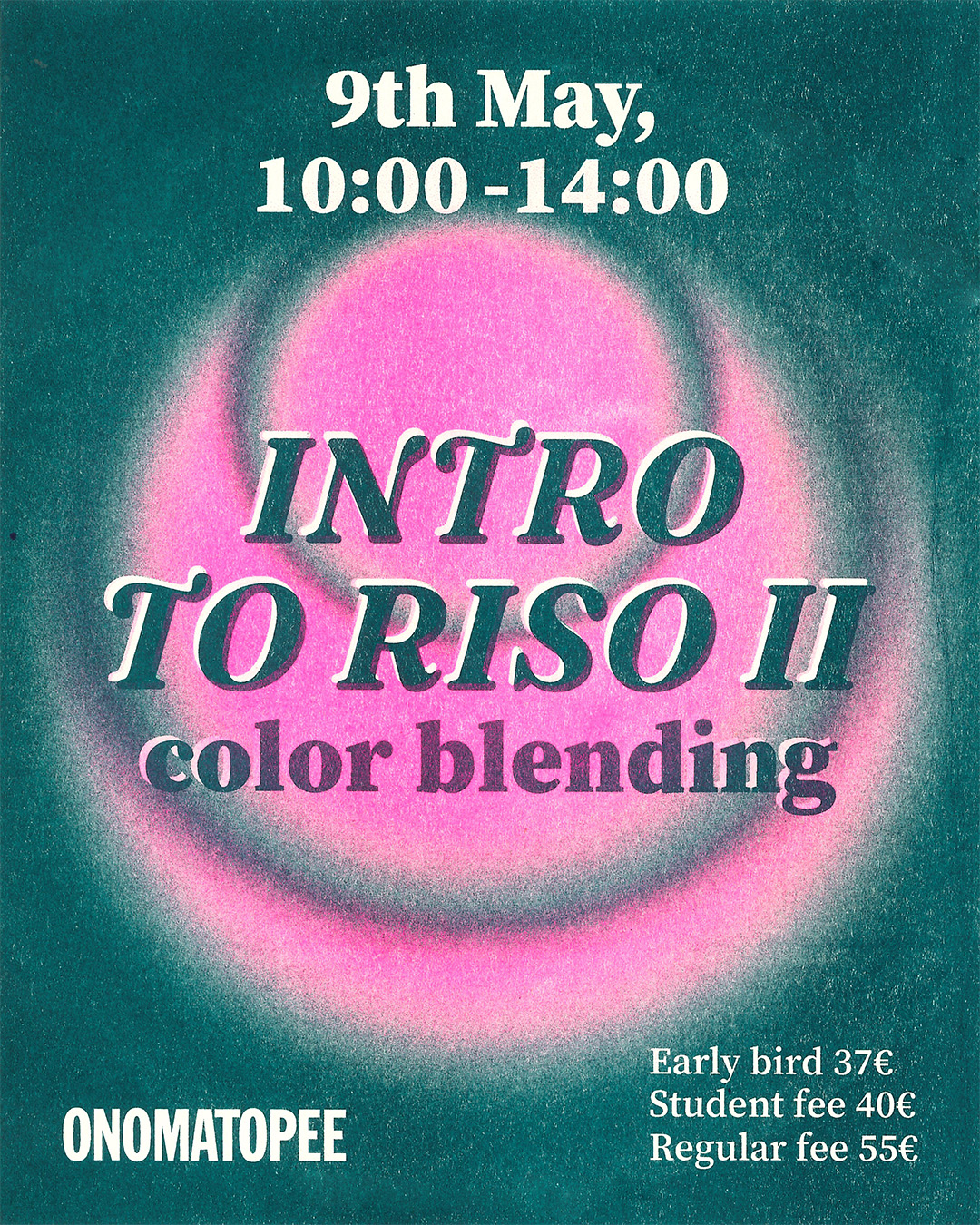 Cost: total workshop fee is € 45,- (or €30,- for students, email riso@onomatopee.net for the student discount code). If you cancel more than 12 hours before the workshop begins, your payment can be transferred to another Intro to RISO Course in the future.