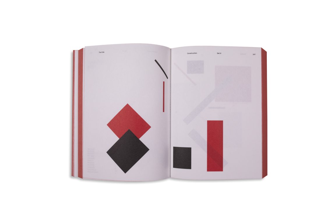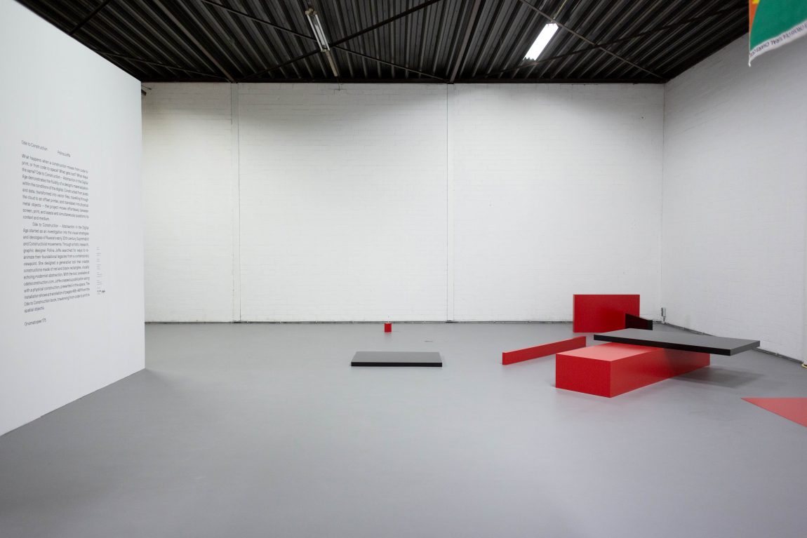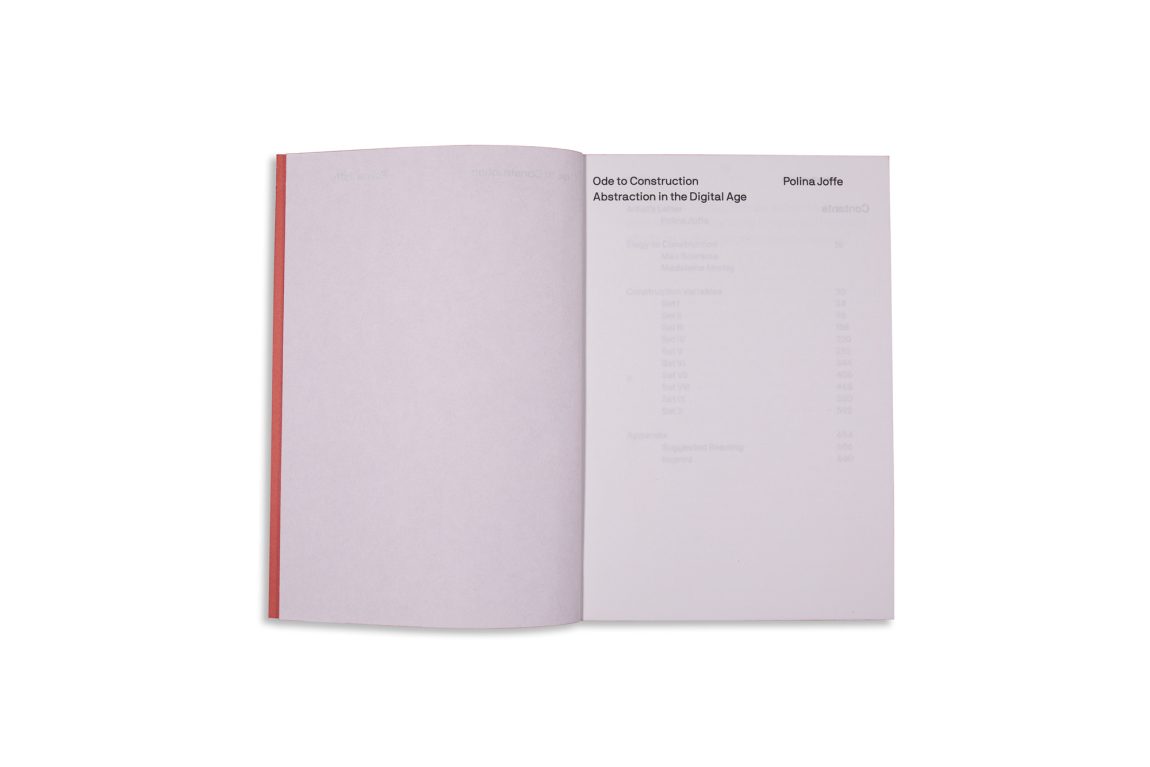 Ode to Construction – Abstraction in the Digital Age started as an investigation into the visual strategies and ideologies of Russia’s early 20th century Suprematist and Constructivist movements. Through artistic research, graphic designer Polina Joffe searched for ways to reanimate their foundational legacies from a contemporary viewpoint. She designed a generative tool that creates constructions made of red and black rectangles, visually echoing modernist abstraction. With the tool, available at www.odetoconstruction.com, Joffe created a publication along with a physical construction, as presented at Onomatopee. The installation shows a translation of pages 488-489 from the Ode to Construction book, traversing from code to print to spatial objects.
