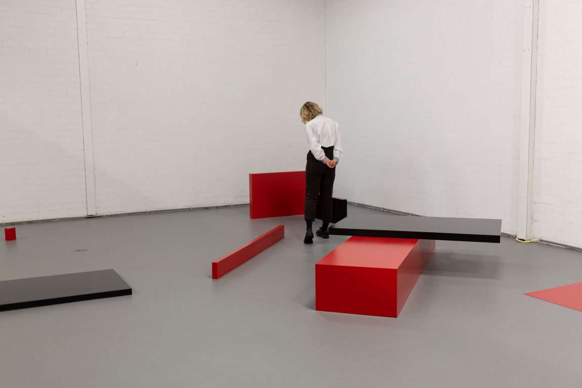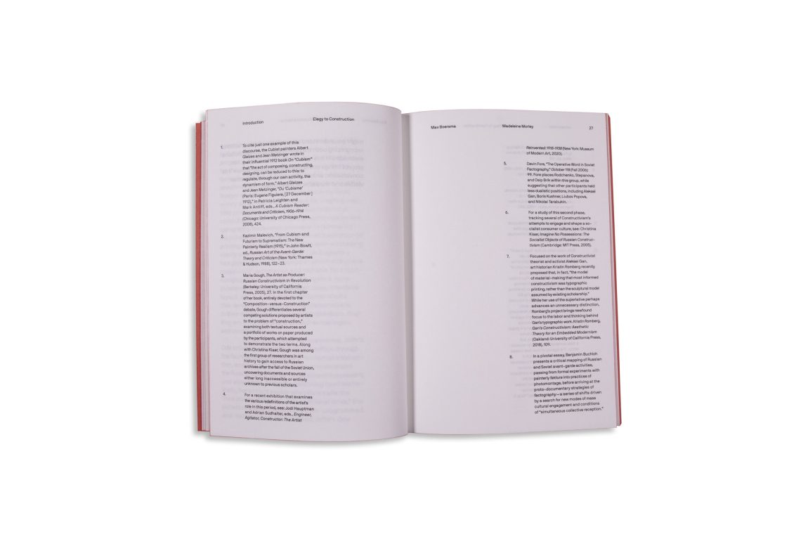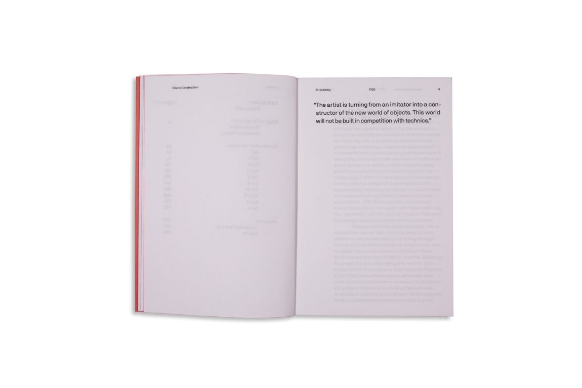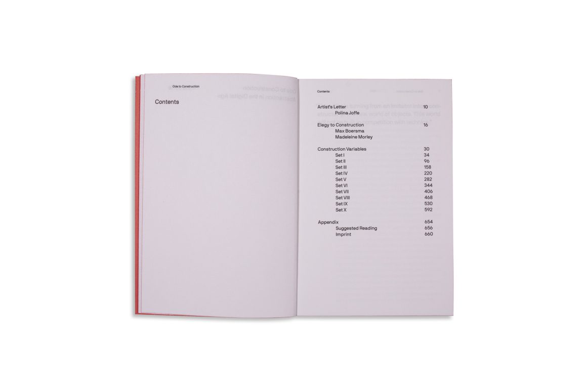 Ode to Construction – Abstraction in the Digital Age started as an investigation into the visual strategies and ideologies of Russia’s early 20th century Suprematist and Constructivist movements. Through artistic research, graphic designer Polina Joffe searched for ways to reanimate their foundational legacies from a contemporary viewpoint. She designed a generative tool that creates constructions made of red and black rectangles, visually echoing modernist abstraction. With the tool, available at www.odetoconstruction.com, Joffe created a publication along with a physical construction, as presented at Onomatopee. The installation shows a translation of pages 488-489 from the Ode to Construction book, traversing from code to print to spatial objects.