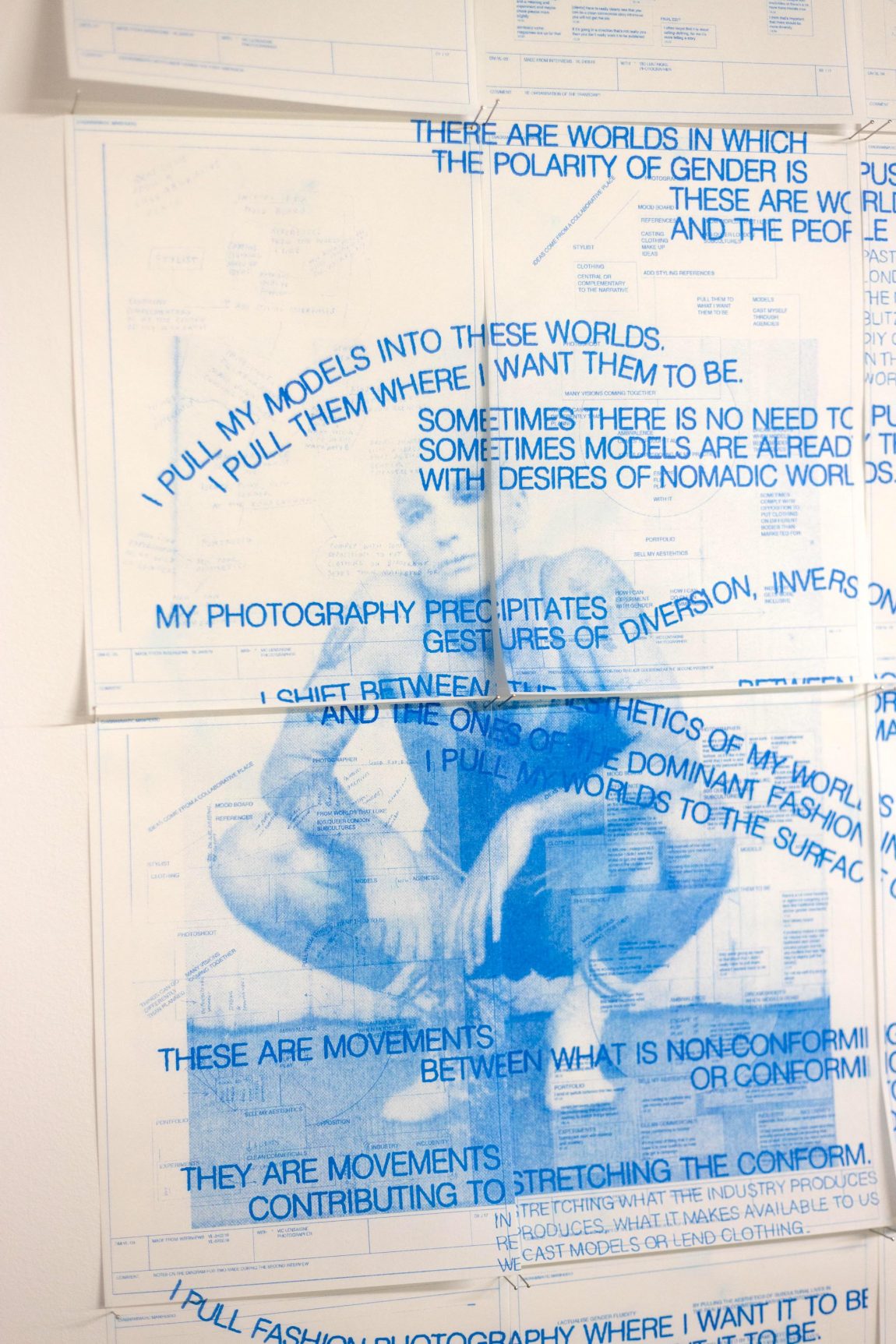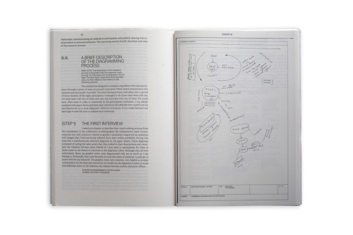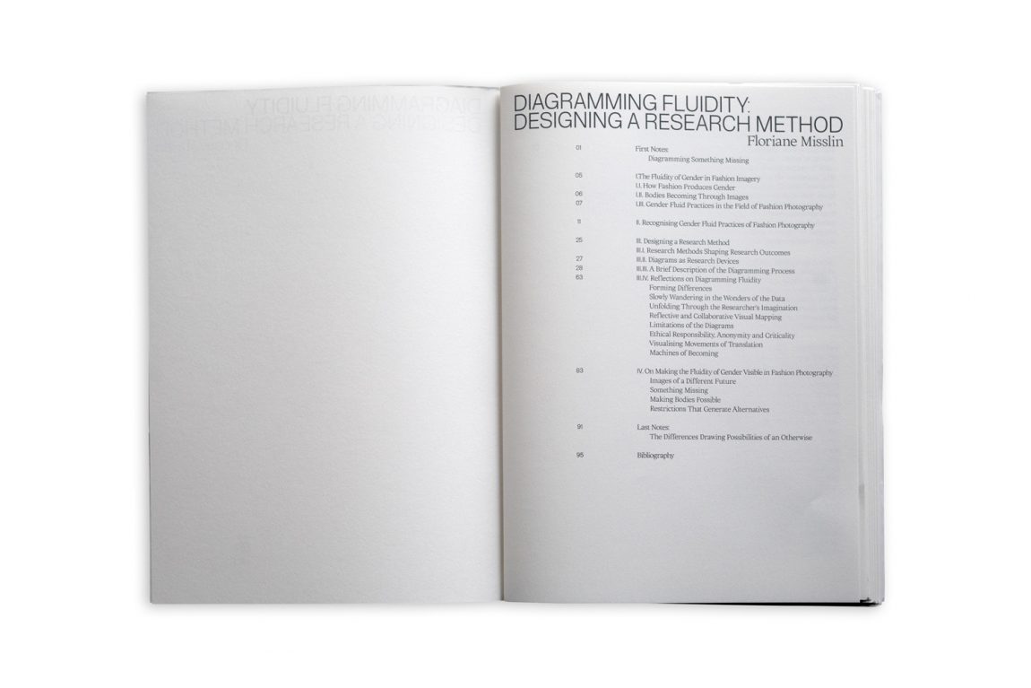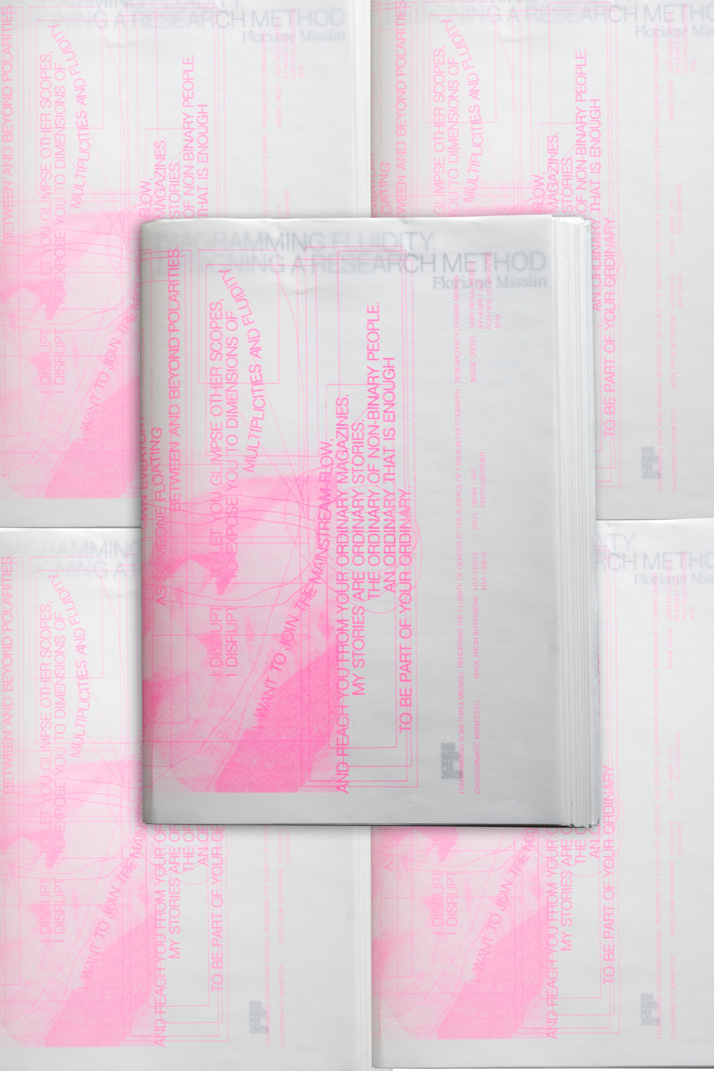 The project outlines the conditions in which the fluidity of gender is being actualized in the production of fashion photography. Floriane Misslin interviewed several practitioners to discuss, question, and reflect upon the past and present of gender fluidity within the field. What gendered divisions have been made so far within fashion (photography)? Is there any room for non-binary visualizations? What is left unsaid, and what is missing? The outcome of the series of interviews is a selection of manifestos that both textually and visually as well as diagrammatically show the different means of making a gender fluid approach to fashion more visible within visual culture.