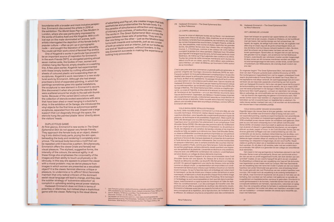 Under the title The Great Ephemeral Skin, Hadassah Emmerich (Heerlen, 1974) presents a new series of works whose central focus is the female body as object. Body and identity, the sensory and the sensual, the commodification of the erotic and the exotic: these are frequently recurring themes in Emmerich’s work. The sensuality of her painting resides not only on the surface of the (erotic) image but also in her refined use of colour and technical execution.