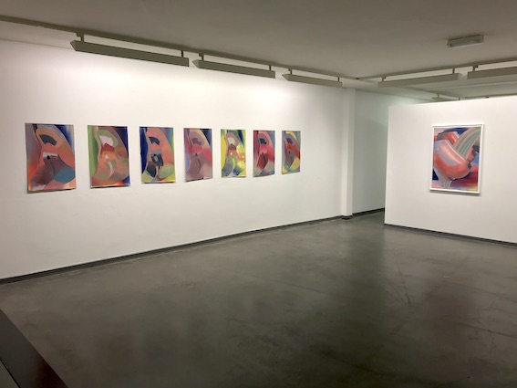 Since 2016, Emmerich has worked with a new painting technique, using stencils cut from vinyl flooring, which she covers with oil paint and then impresses onto canvas, paper or a wall. Referring to the visual language of advertising and Pop art, she creates images that both aestheticise and problematize the female body. She depicts the paradox of simultaneous attraction and repulsion, intimacy and cool detachment, seduction and critique. In this way, Emmerich succeeds in making the act of looking truly provocative.