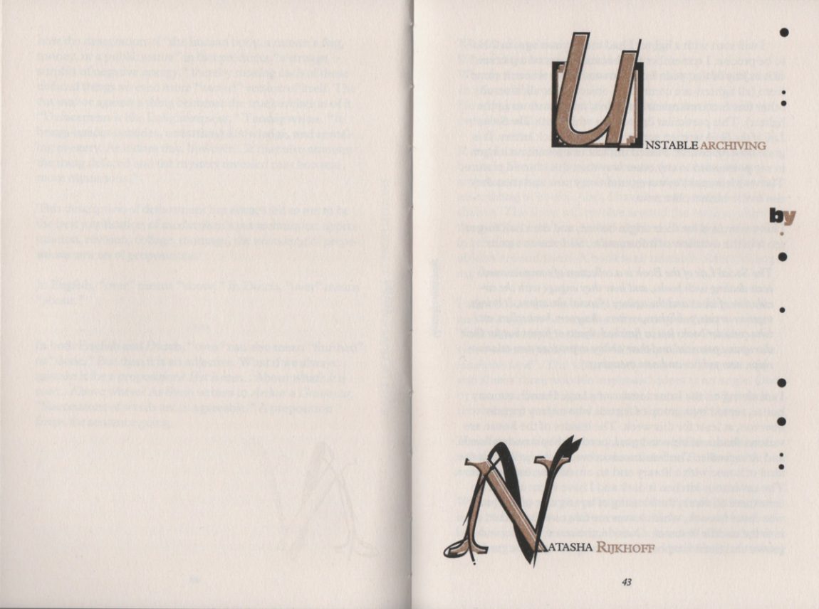 As we navigate through the pages of this publication, it becomes evident that the book and the archive are no rigid entities with clear boundaries; they are malleable objects and concepts, shaped by interpretation and their social and material context. They emerge as living organisms, adapting to the changing currents of the people moving alongside them: a testament to both curatorship and chance, design and chaos. This publication celebrates this unruliness that comes with amassing and assembling a publishing practice.