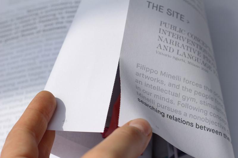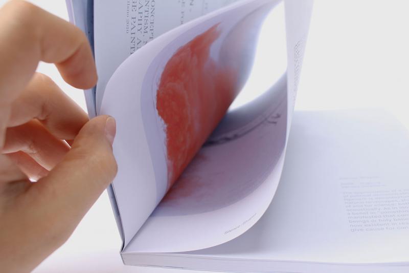 In this first oeuvre overview, texts are featured on neutralized “white cube” pages while the visual is hidden yet assessable inside Japanese folded pages. In result it confronts the fast redistribution of circulating imagery and acknowledges power relations within the actual context of production. An independent challenge both to producers of anti-culture and to the regime.