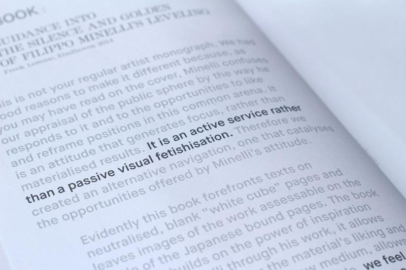 Covering the work of Minelli for the first time, this book features theoretical texts on neutralized blank “white cube” pages acknowledging the hidden images that are assessable on the inside of the Japanese bound pages. This monographic survey dares to face the likeability of our conditioned visual and cultural rhetoric, confronting the fast redistribution of circulating imagery and at the same time acknowledging power relations within the actual context of production. An independent challenge, as much to fast youth and street culture as to the bureaucratic producers of our actual environment.