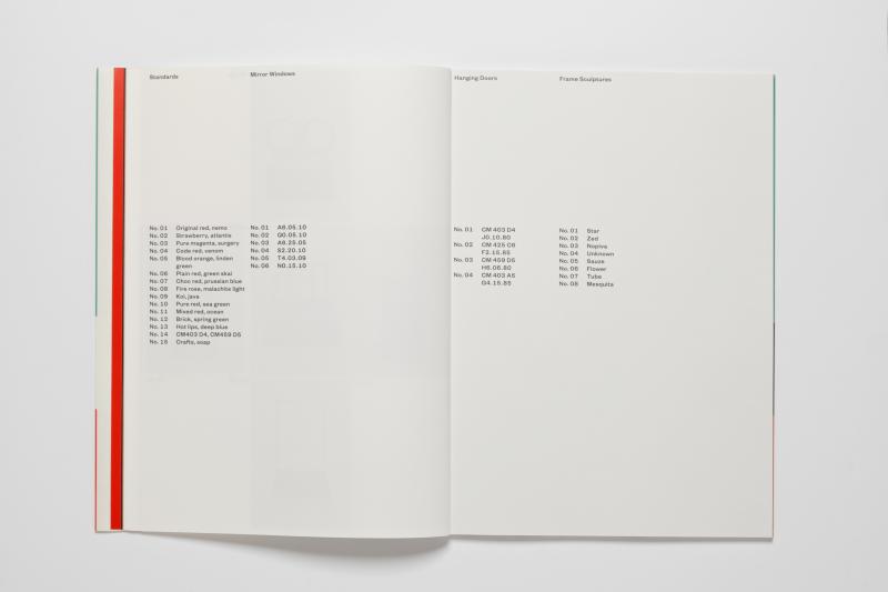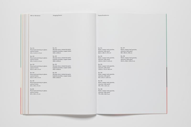 The publication concludes with an index of the Raat’s works, their material palettes and various dimensions–which ensures readers their two-dimensional representations printed here, are references to illusions of prior assembled situations; the text responds to Raat’s explorations of the ideals embedded in these modified reproductions, which compound them to emphasizes relations between the viewer and the objects–their receptions.