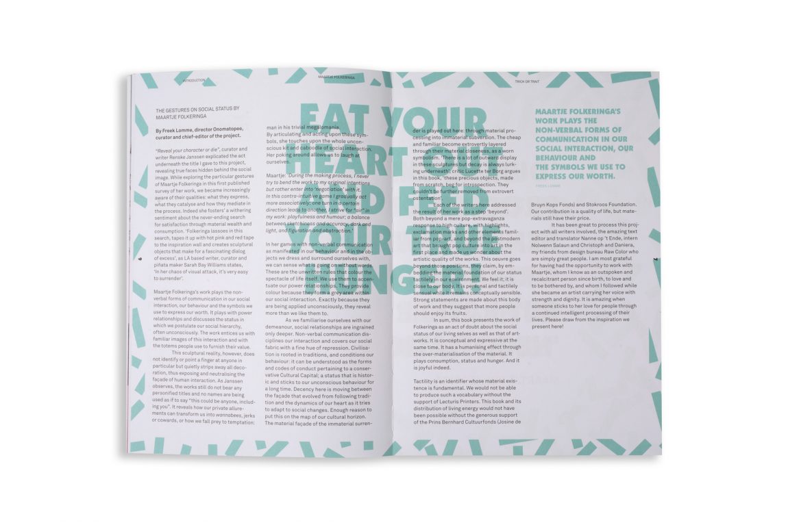 The double-faced features of bling-bling. This is the first monograph on the art of Maartje Folkeringa (1978), a mid-career, upcoming Dutch artist, whose sculptural work sets out for the non-verbal forms of tactile communication in our behaviour and social interaction. Through the choice for specific materials and the way they are processed into totems of status, this physical body of work humanises the popular and high-end finery with which we rank ourselves and others through the lens of art. It plays with the totems by which we (un)consciously postulate our social hierarchy, allowing both the positioning of the art-object and the signalling of our status.