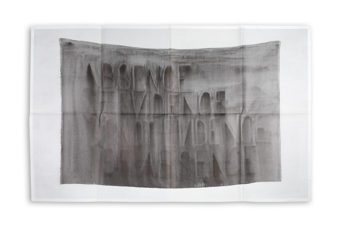 During his working period at the Cacaofabriek, Navid developed an artistic signature that grabbed Onomatopee’s attention. Titles of works should function, according to Navid, both as a literary designation of meaning as of a visual addition to this conceptual stance. This was Navid’s working challenge. Navid figured out a way how he could play with the text’s ink by spraying water on the text, on the canvas. The ink of the text would flow downward, leaving layers of ink in different colours behind. Black ink, for example, contains multiple colours of witch some flow further down then others. A flowing colour radiance is what resides on the canvas.