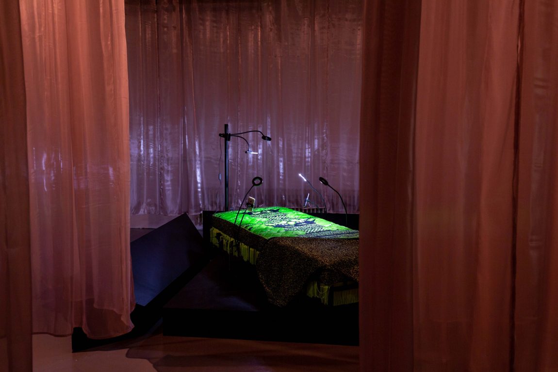 A selection of 9 designers / collectives / initiatives are given the assignment to take the stage for the duration of 1 day. The décor in which this experiment takes place portrays the iconography of the theatre and echoes and mirrors the theatricality of today’s levitation of design on display. By playing around with the off- and online stratosphere of design mediation today both literally and figuratively, The Phantom of design highlights the impossibility of physicality in these unprecedented times.
