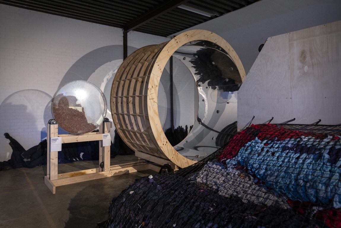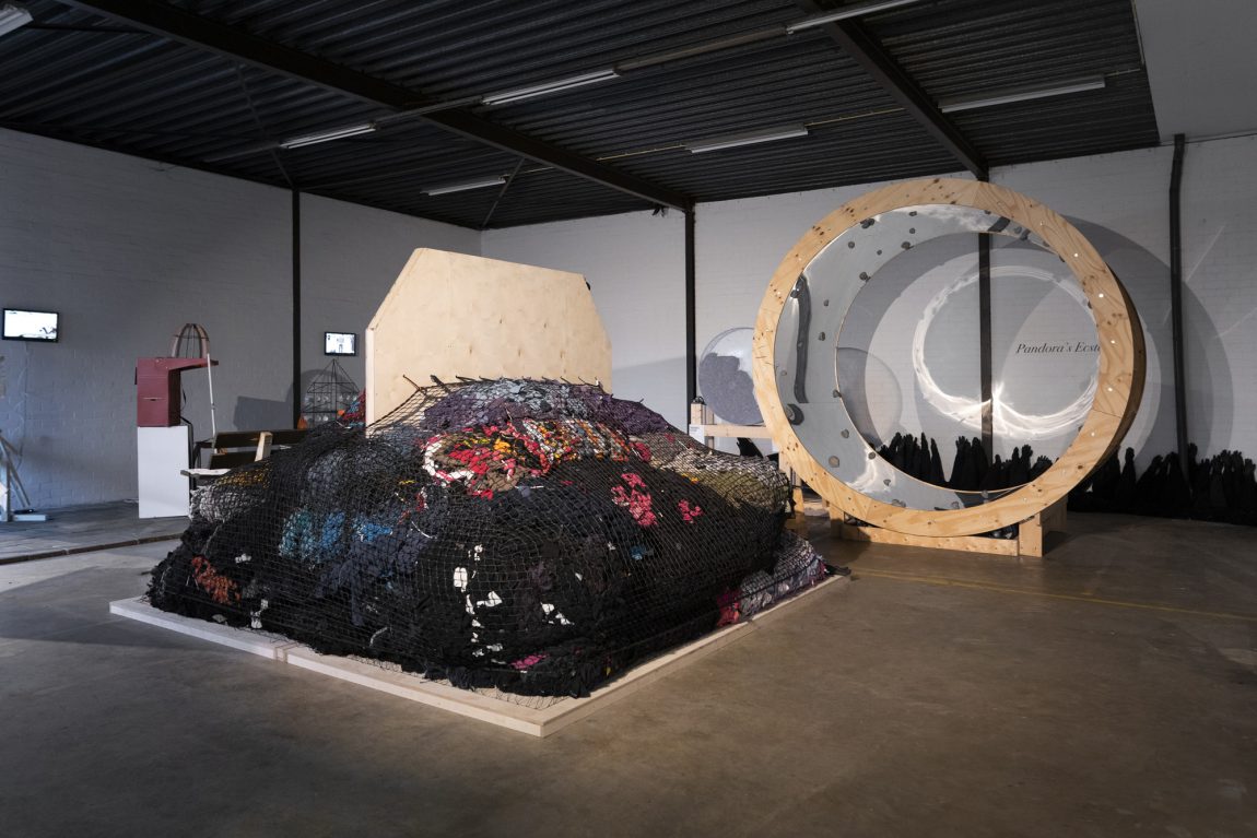 Magic becomes reality as microfibers compile their way into our everyday lives. In the experience of the total installation “Pandora’s Ecstasy” at Onomatopee, humans are invited to take a leap into a future world where they have become extinct.