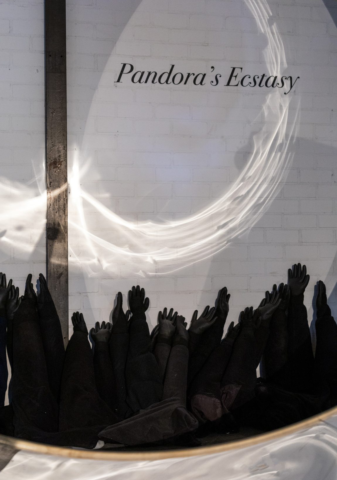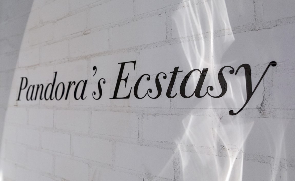 Entering “Pandora’s Ecstasy,” you step out of yourself–your ego, your mind, your present–and enter an ecstatic state. Ek-stasis means, “to stand out, aside,” and refers to any type of displacement. The state of ecstasy, or “being outside oneself,” suggests moments of feeling deeply touched, lifted out of yourself. Historically, humans have found ecstasy in religion, but also poetry, music, dance, sex, drugs, or sport. “Pandora’s Ecstasy” suggests that mythology, too, is ecstatic.