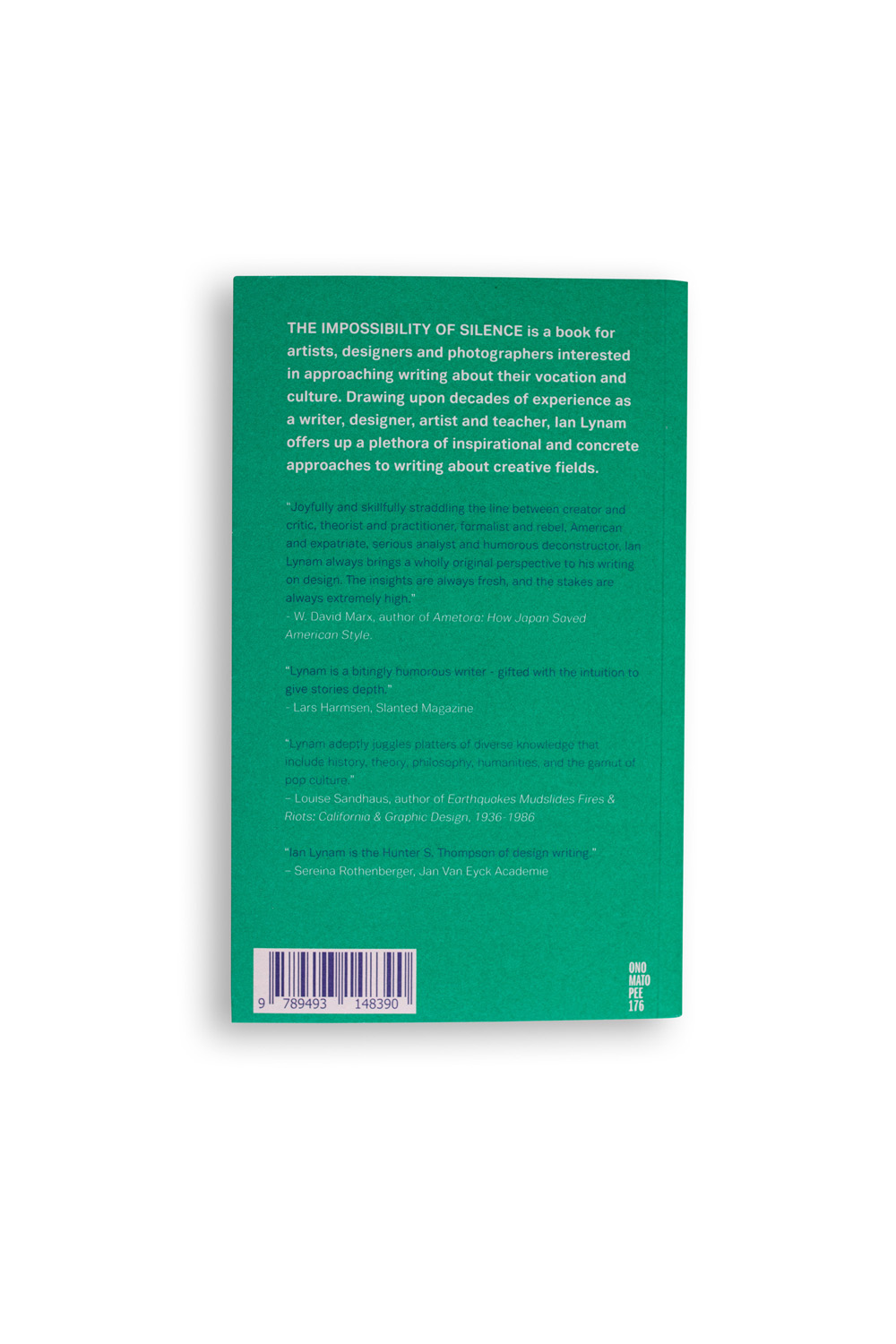 THE IMPOSSIBILITY OF SILENCE is a book for artists, designers and photographers interested in approaching writing about their vocation and culture. Drawing upon decades of experience as a writer, designer, artist and teacher, Ian Lynam offers up a plethora of inspirational and concrete approaches to writing about creative fields.
