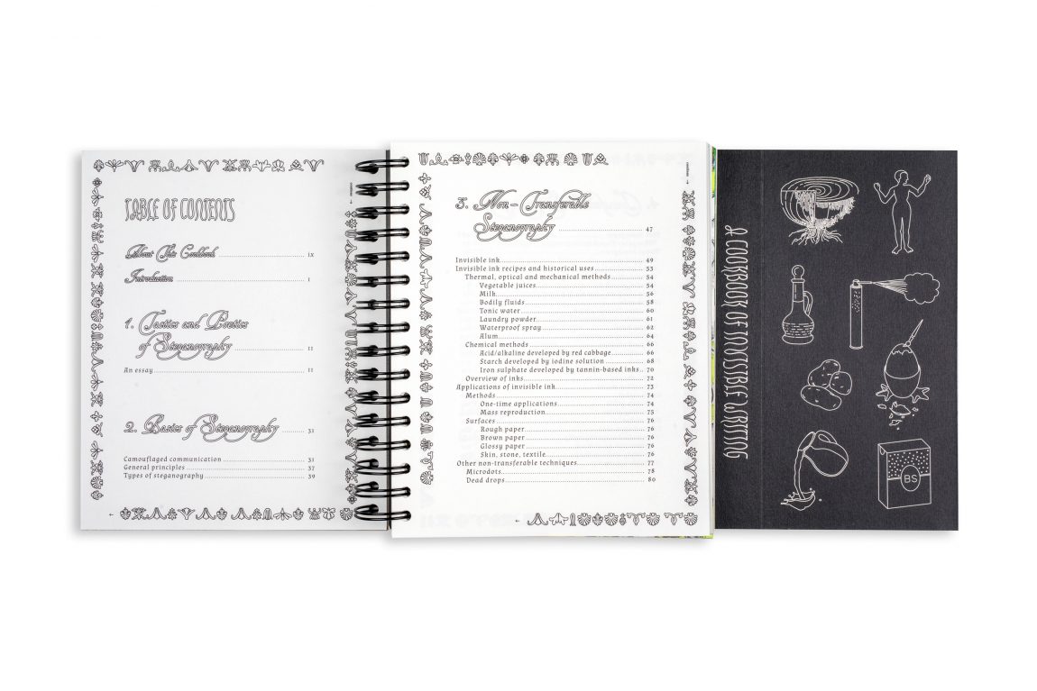 In the tradition of esoteric manuals published on secret writing, this cookbook also channels the spirit of everyday access and the easy distribution and sharing of practical knowledge. Following Della Porta’s 1558 popular science book Natural Magic, one of the first major publications that detailed simple but diverse recipes of invisible inks for public consumption, this Cookbook aims to bring this obscure field to a wider audience. The publication includes a critical essay about the history of surveillance through a feminist and postcolonial lens. In the last Chapter is the artistic practice of the author and her body of work that aims to resuscitate analog techniques in light of surveilled and censored contexts.