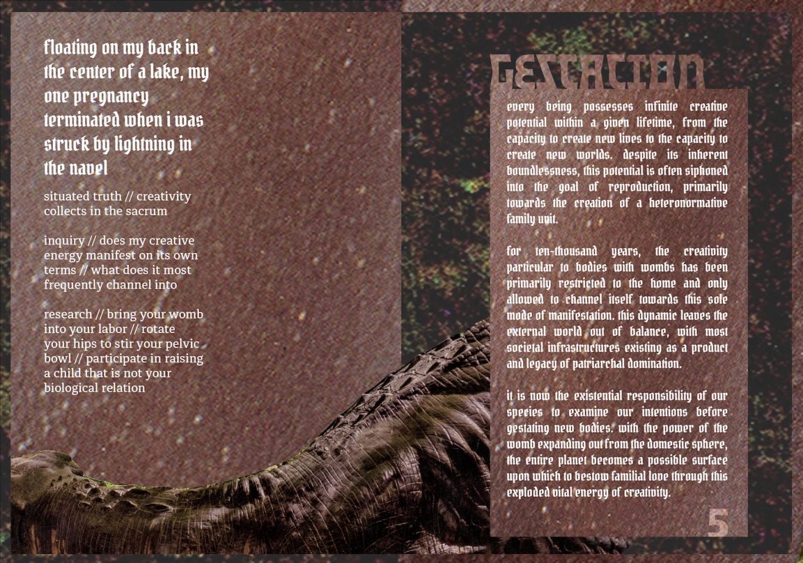 radical becomings are allied with the grotesque—vaginal openings, intestinal worms, bodily fluids, voluptuous swamps, reptilian secretions— anything too close to the fecundity of life, anything carrying the potential to disrupt the boundaries of self, anything possessing a slithering primordial power. quietly bubbling at the edges of ‘human' decency, the grotesque is the affect of radical seduction.