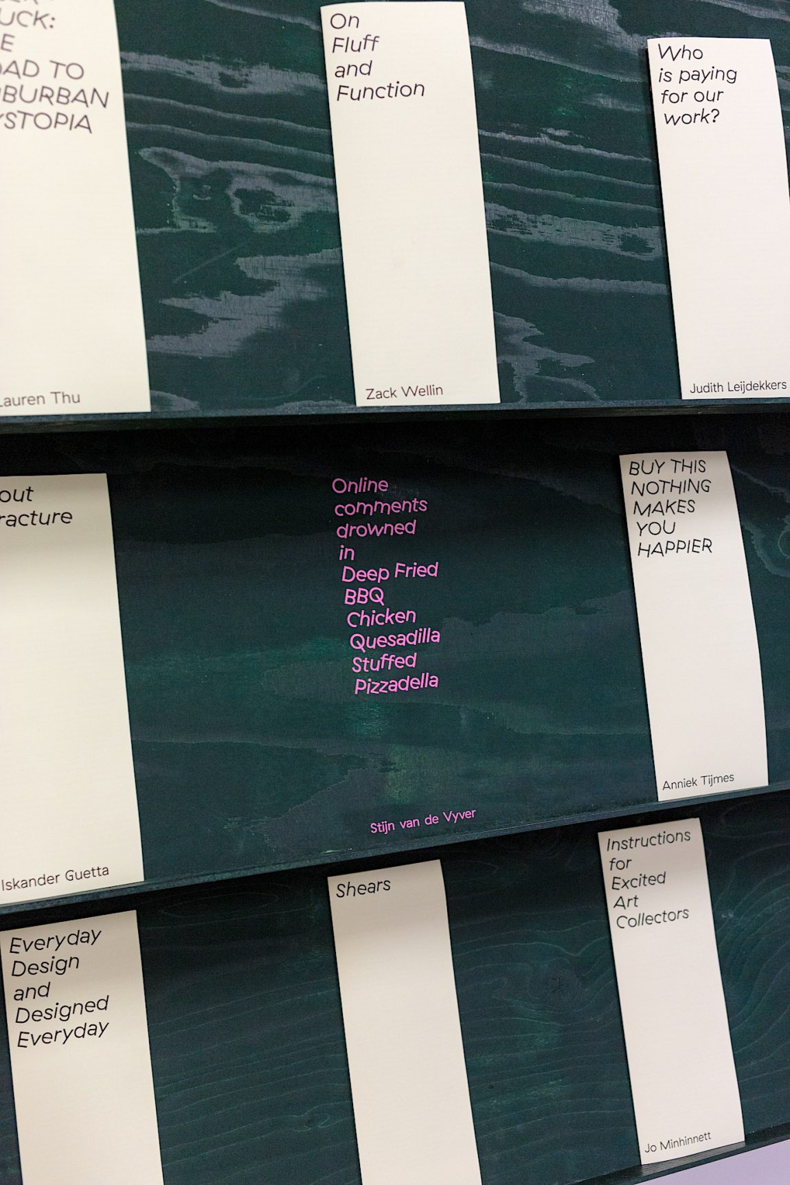 Onomatopee launched an open call to advocate for (un)professional everyday design criticism. Participants were asked to submit a short text that criticizes, discusses, analyzes or reflects upon an everyday design object, system, environment, or construct. The 15 selected essays can be read individually in the installation and will soon be published collectively in a book.